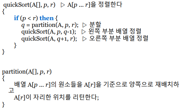 quickSort(A, p, q - 1); // 왼쪽 부분 배열 정렬