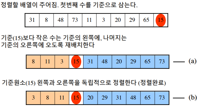 - 최악 시간복잡도 - O(n^2), 평균 시간복잡도 - O(nlogn)