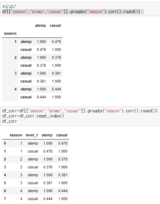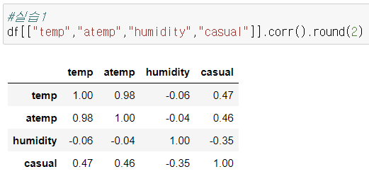 pandas - corr() : pandas에서 상관계수만 빠르게 뽑는 메서드